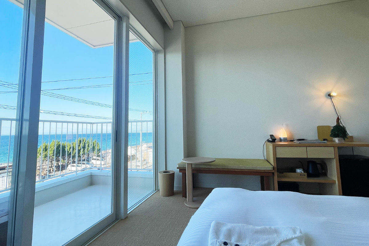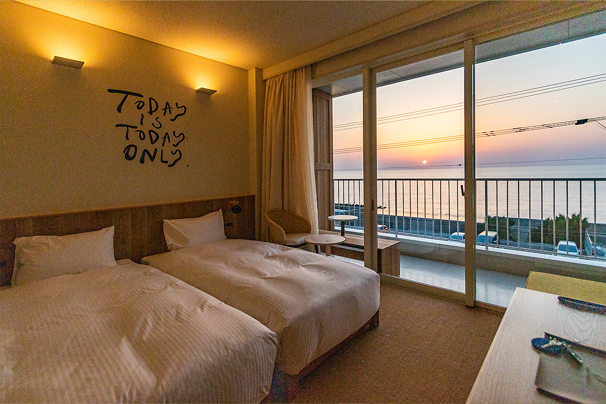 早い時間からチェックインをして頂き、サウナ上がりにプラン限定の特典「サウナドリンク」と共に夕陽(17時頃)を見ながらホテルで一息。
